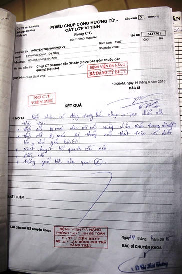 Liên quan đến vấn đề này, trưa 20/8, bác sĩ Nguyễn Ngọc Bá, Phó giám đốc Bệnh viện Đa khoa Đà Nẵng; bác sĩ Lê Đức Nhân, Phó giám đốc Bệnh viện đã có cuộc trao đổi với PLVN. Theo bác sĩ Nhân và Bá, quá trình cấp cứu và tiến hành các thủ tục liên quan đến bệnh nhân là 2 việc hoàn toàn tách rời, không dính dáng đến nhau. Bệnh nhân Vy nhập viện lúc 9h04 phút, ngay sau đó các y bác sĩ cấp cứu lập tức cho tiến hành thăm khám, điều trị. Cụ thể, kết quả chụp CT đã thể hiện 9h 14 phút. Còn các thủ tục giấy tờ cần thiết do bộ phận hành chính đảm nhận. “Bệnh nhân có chứng minh thư, có bảo hiểm y tế… hay không, hoàn toàn không liên quan đến kíp bác sĩ đang làm việc bên trong. Tuy nhiên, có thể do bộ phận hành chính đặt câu hỏi và trả lời theo mô típ cứng nhắc khiến gia đình nạn nhân hiểu nhầm”, bác sĩ Nhân khẳng định.