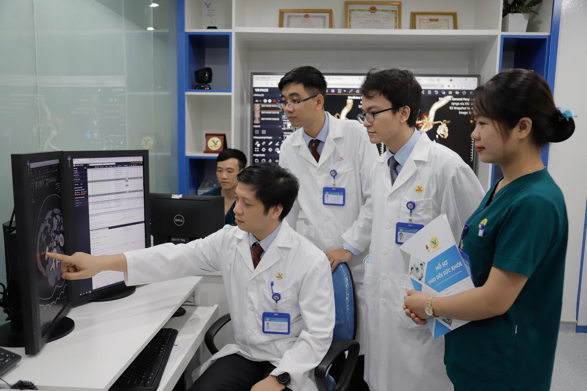 MEDLATEC sẵn sàng tâm thế của đơn vị y tế tư nhân số 1 về khám chữa bệnh chất lượng cao, dịch vụ hàng đầu tại Việt Nam. (Ảnh chuyên gia, bác sĩ hội ca bệnh khó trên phim chụp CT 128 dãy) |