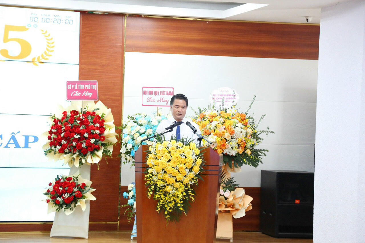 Nhân dịp chào mừng kỷ niệm thành lập 5 năm Trung tâm Đột Quỵ, BSCKII. Lê Đình Thanh Sơn - Giám đốc BVĐK tỉnh Phú Thọ có lời cảm ơn và tri ân đến các vị lãnh đạo, các chuyên gia đã giúp đỡ trung tâm trong suốt thời gian vừa qua.