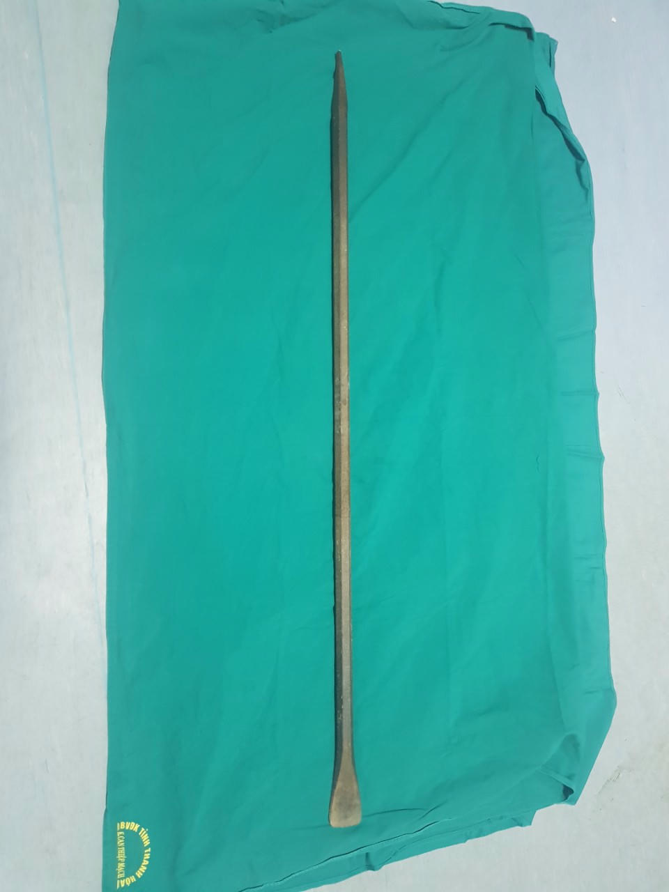 Kíp phẫu thuật cho bệnh nhân gồm hơn 10 Bác sĩ, Điều dưỡng và nhân viên phục vụ đã nhanh chóng tiến hành phẫu thuật mở ngực tối đa lấy xà beng, cầm máu và khâu phục hồi nhu mô phổi thùy giữa và thùy dưới. Sau 90 phút thực hiện ca phẫu thuật, các Bác sĩ đã lấy thanh xà beng sắt dài hơn 01 mét ra khỏi ngực bệnh nhân. Hiện tại bệnh nhân đang thở máy, mạch, huyết áp ổn định, không cần dùng thuốc vận mạch, không mất nhiều máu, chỉ phải truyền 02 đơn vị khối hồng cầu.