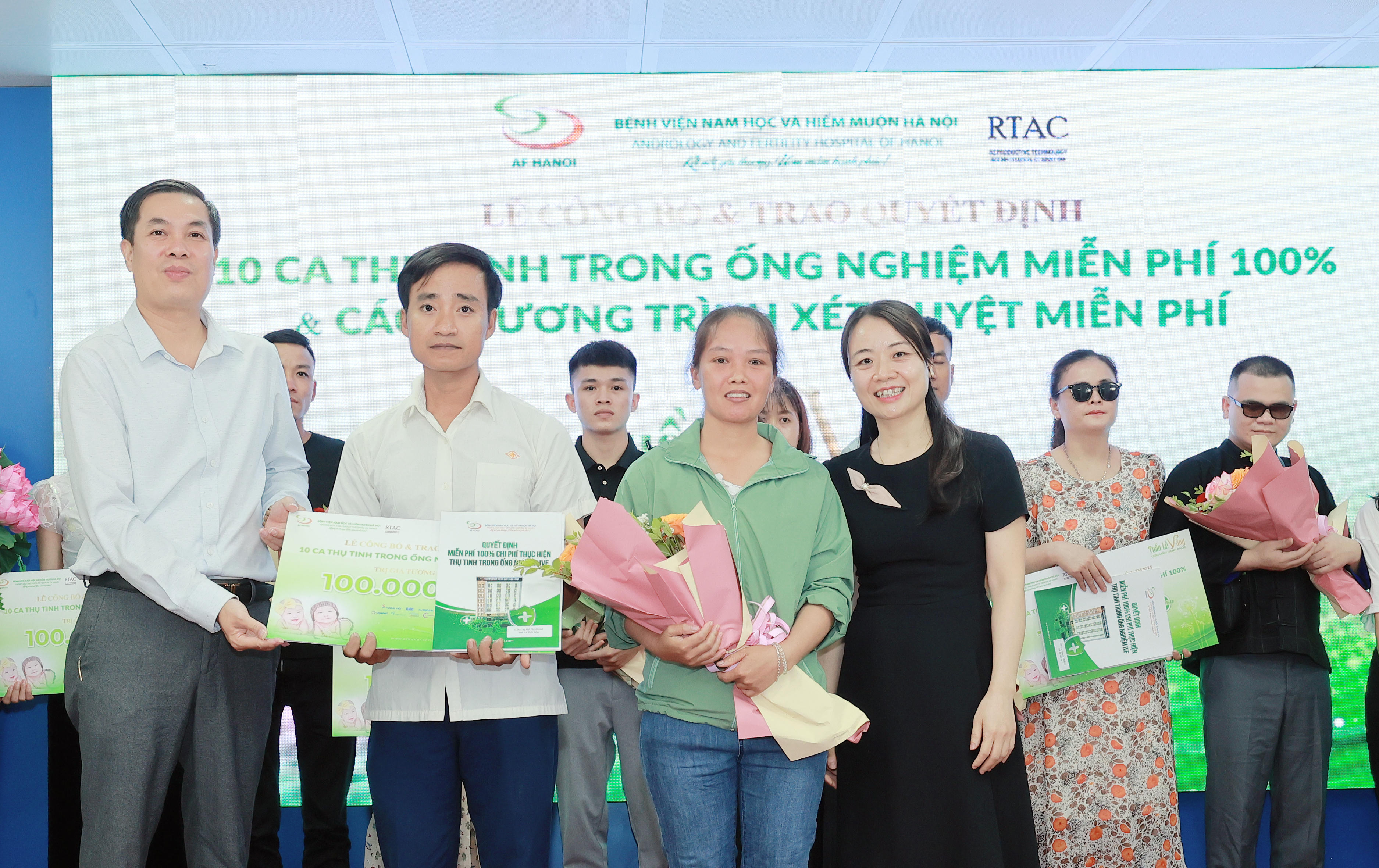 (PLVN) - Sáng 24/6, Bệnh viện (BV) Nam học và Hiếm muộn Hà Nội đã tổ chức lễ “Công bố và trao quyết định: 10 ca Thụ tinh trong ống nghiệm (TTTON) miễn phí 100% và các chương trình xét duyệt miễn phí khác” cho các trường hợp bệnh nhân đủ điều kiện, đã nộp hồ sơ đăng ký xét duyệt trong khuôn khổ chương trình Tuần lễ vàng – Ươm mầm hạnh phúc 2023.