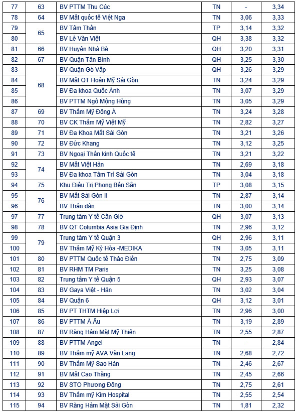 Danh sách 115 bệnh viện trên địa bàn TP HCM được Sở Y tế kiểm tra, đánh giá chất lượng:
