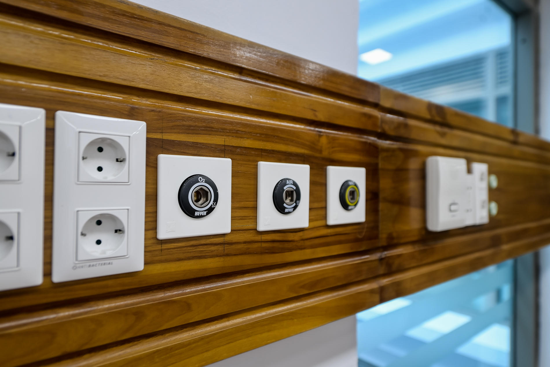 Hệ thống khí y tế, chuông gọi y tá được lắp đặt ở đầu mỗi giường bệnh. |