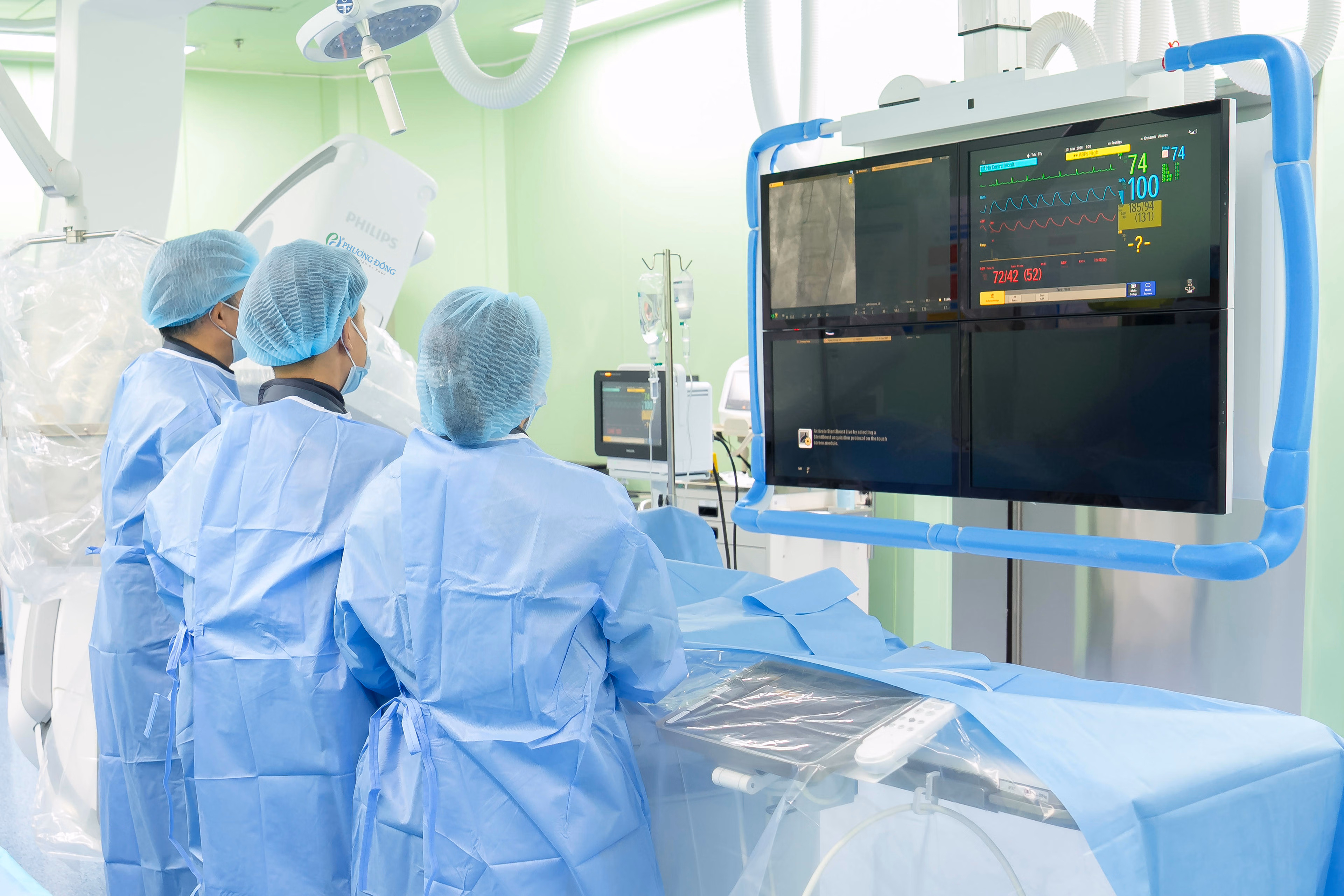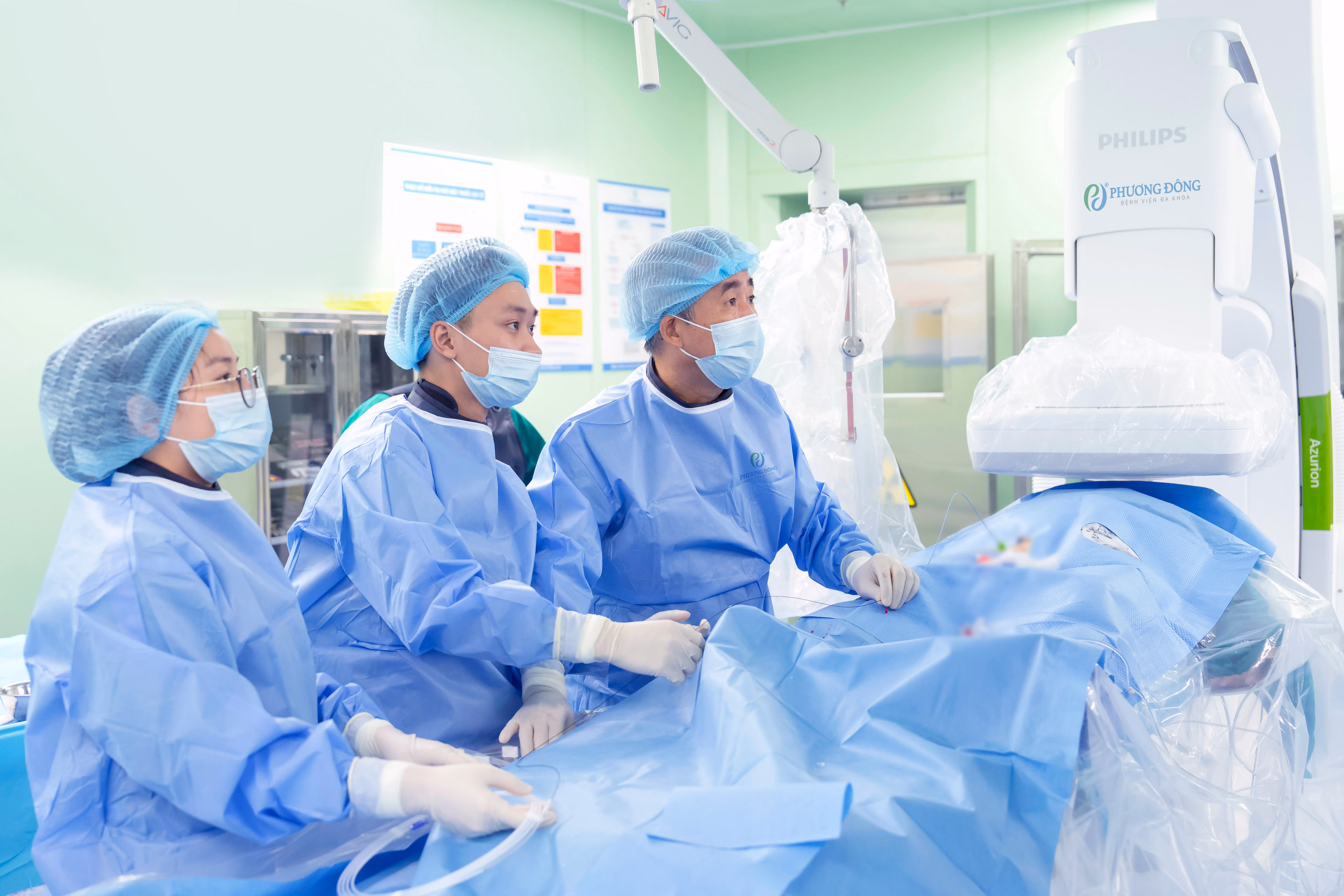 Dưới sự hướng dẫn của hệ thống DSA hiện đại, kỹ thuật can thiệp được đội ngũ bác sĩ thực hiện chính xác đến từng milimet.