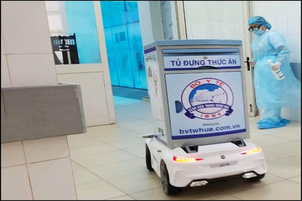 Được cải tiến từ xe ô tô đồ chơi điều khiển từ xa của trẻ em, “robot” này trở thành một nhân viên y tế đặc biệt thay thế nhân viên y tế trong công đoạn đưa thức ăn, thuốc men, nhu yếu phẩm… đến với bệnh nhân, tránh tiếp xúc gần dễ bị lây nhiễm trong quá trình điều trị.