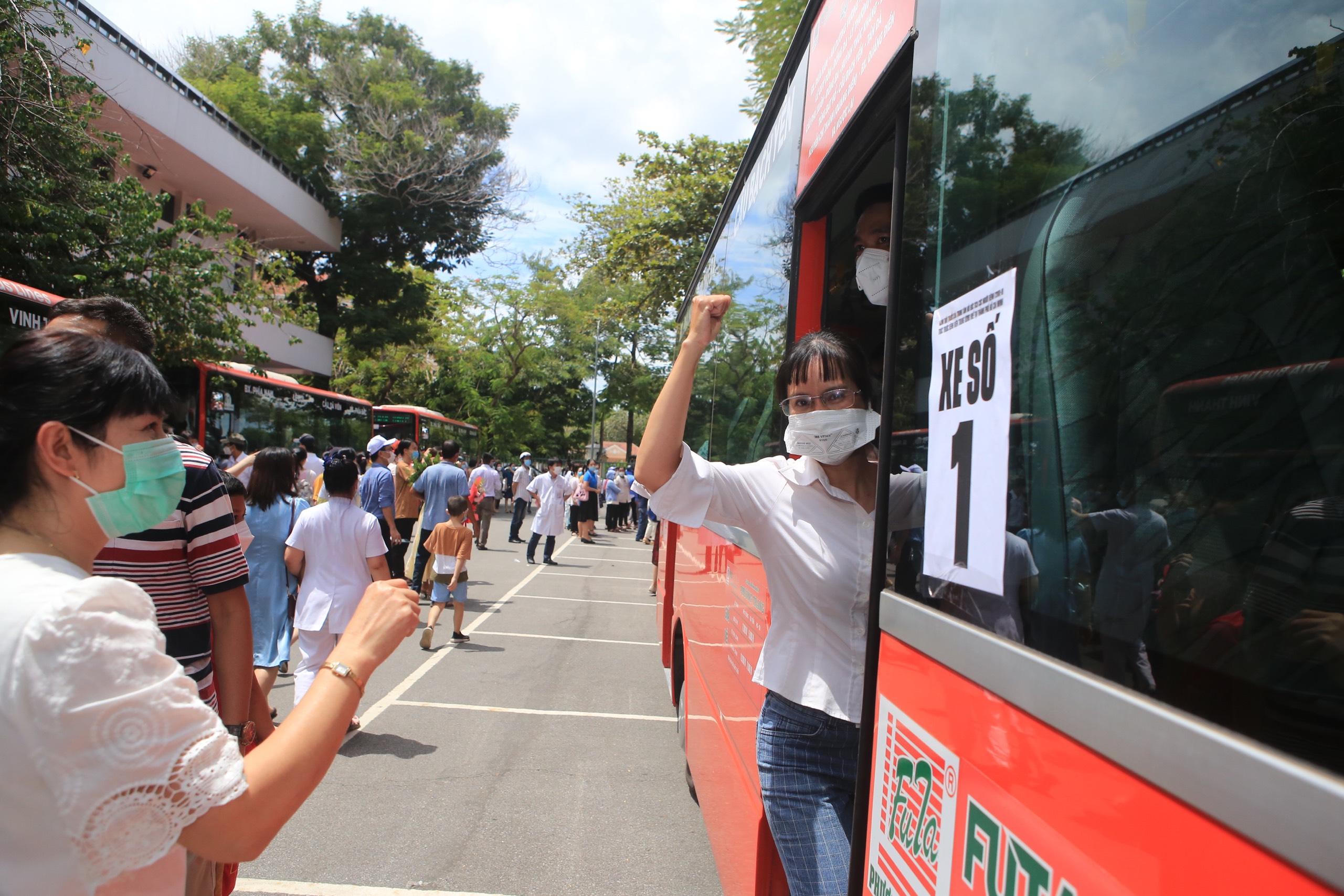 Một cán bộ y tế thể hiện sự quyết tâm khi lên đường vào TP. Hồ Chí Minh trong đợt 3 này. |