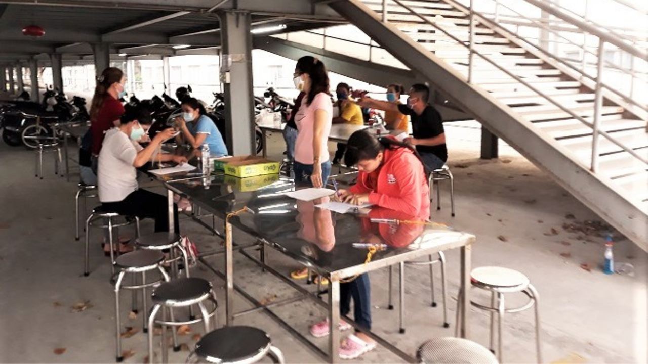 Người lao động ký tạm hoãn hợp đồng lao động tại Khu công nghiệp Tân Hương (Ảnh: Văn Thanh) |