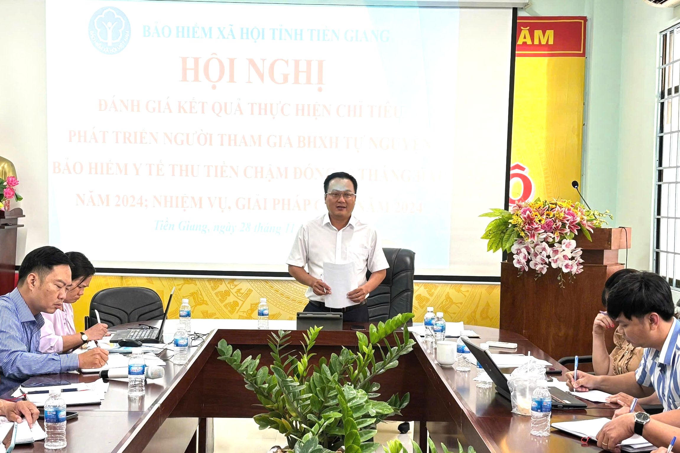 Giám đốc BHXH tỉnh Tiền Giang nhấn mạnh một số nội dung trọng tâm cần thực hiện để hoàn thành chỉ tiêu đề ra như: Đơn vị chú trọng khâu kinh phí tuyên truyền, kiểm tra và rà soát danh sách hộ Nông, Lâm, Ngư và Diêm nghiệp có mức sống trung bình để lập danh sách cho năm 2025.