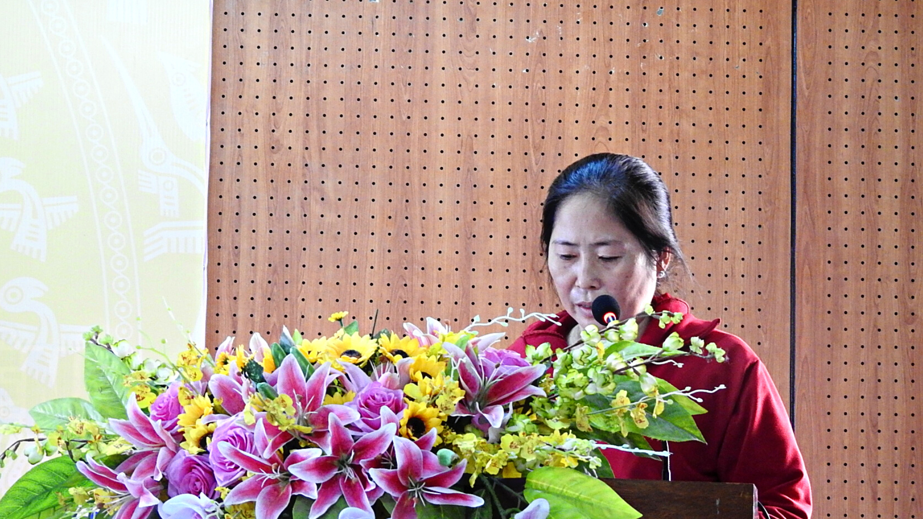 Chị Võ Thị Kim Quyên chia sẻ cảm xúc khi nhận thẻ BHYT tại buổi lễ |