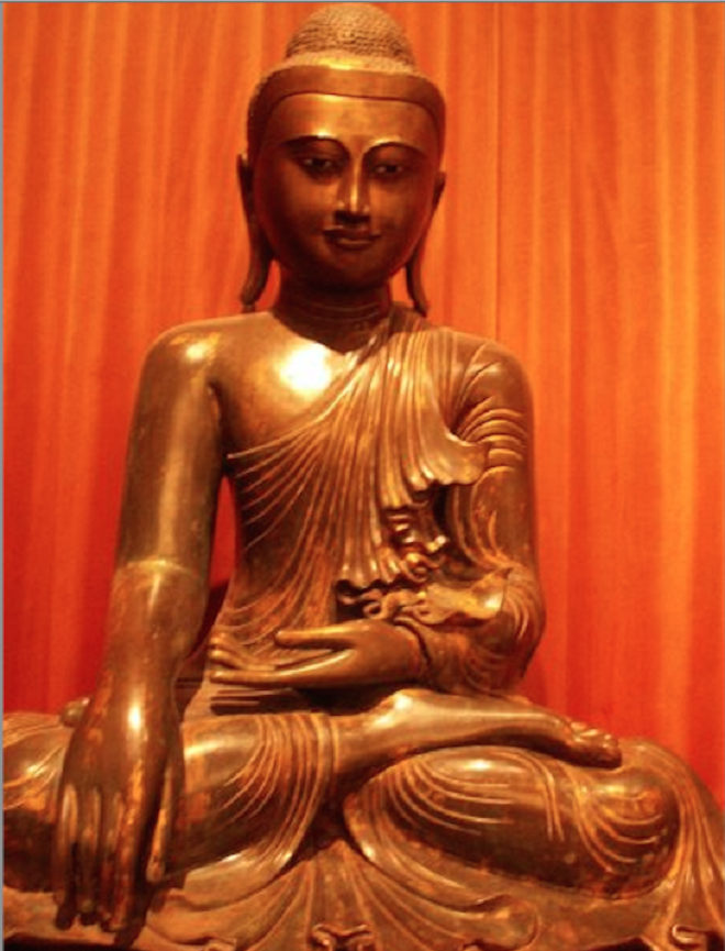 Khi Ngài đưa hai tay lên ngang ngực, gan tay trái hướng ra trước, gan tay mặt hướng lên trên, những ngón tay xòe ra gần đụng tay kia, đấy là lúc Đức Phật Thích Ca Mâu Ni thuyết pháp. Ấn quyết này nhiều nơi được thay đổi ít nhiều. Ở Ấn Độ, hai tay xa nhau và các ngón không đụng nhau.
