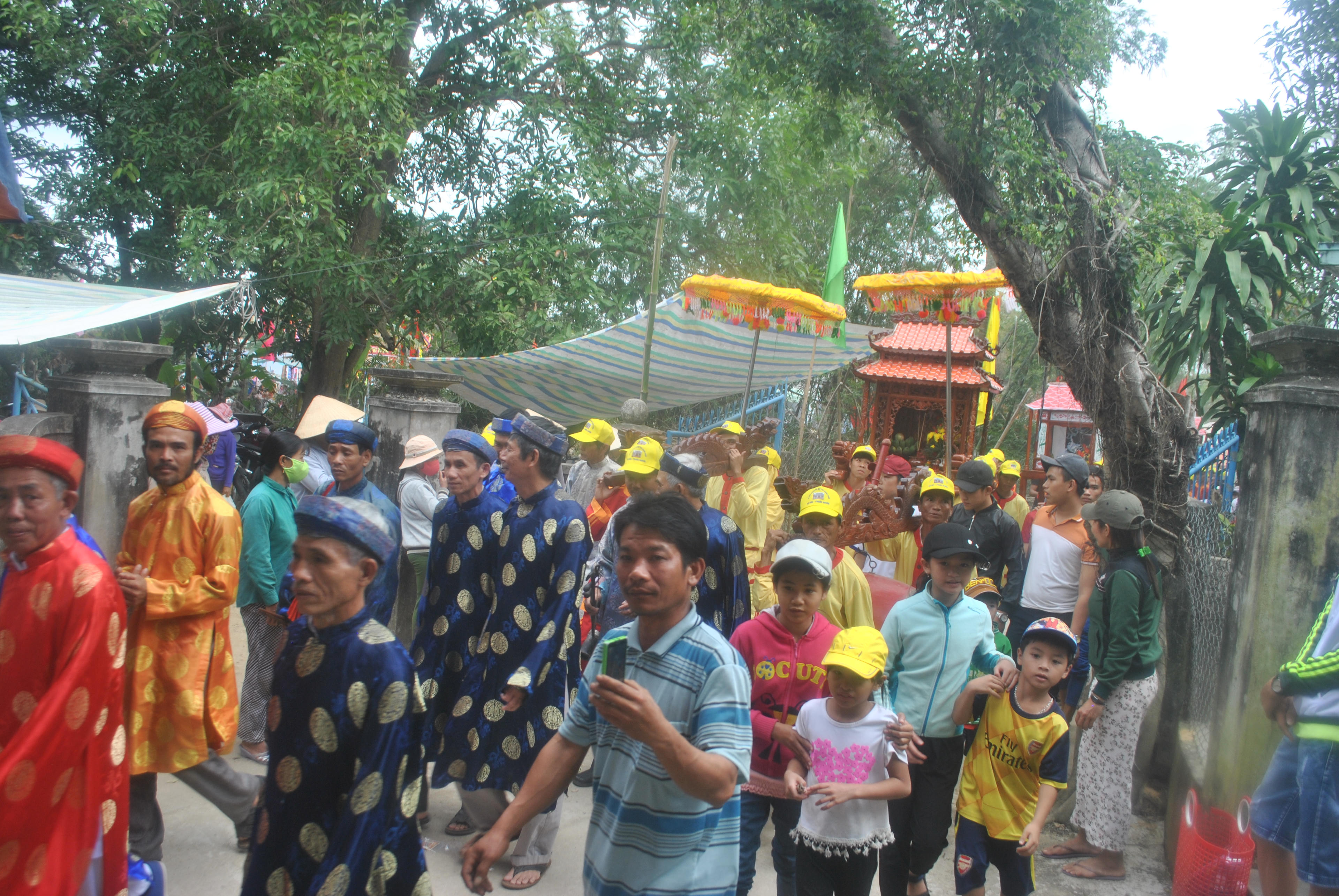 Nhà nghiên cứu Nguyễn Xuân Nhân cho biết: “Những hình người như kẻ đốn cây phá rừng ngập mặn, người vỡ ruộng đắp bờ, kẻ bủa lưới đánh cá, người chăn nuôi gia súc… được cung kính đặt lên kiệu nối theo nhau khiêng đi. Lại còn có biểu trưng tàu thuyền viễn dương với những tay chèo vạm vỡ vượt sóng gió làm sống lại những ngày đầu tàu thuyền bốn phương tới cảng thị buôn bán”.