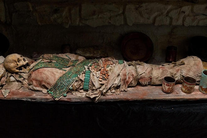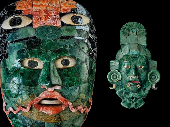 | Những chiếc mặt nạ ngọc bích màu xanh bên trong các cổ mộ ở Calakmul là thứ mà các vị tiên đế Đại Xà sử dụng sang thế giới bên kia. |