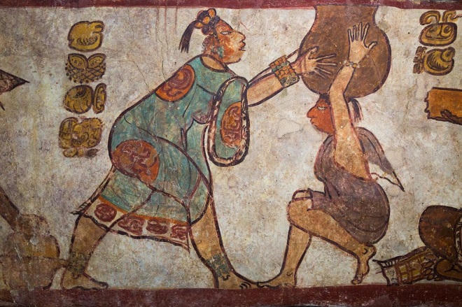 Những bức vẽ cho thấy cảnh hoàng đế Yuknoom Cheen II an tọa, thư giãn, hoặc ngó qua các vị vua Saknikte. Cái tên của hoàng đế Yuknoon Cheen II liên tục hiện ra trong đế quốc Maya. Nhà vua đã lấy con gái của vị tiểu vương Waka và bà này sau đó trở thành một nữ hoàng chiến binh uy dũng.