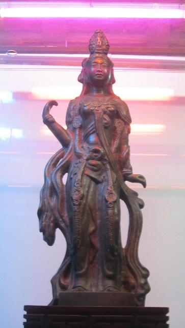 Anh Lộc chia sẻ, bức tượng Phật quý hiếm là tượng Quan Thế Âm Bồ Tát nguyên thể thuộc dòng Phật giáo Mật tông hệ Kim Cang Thừa. Pho tượng được đúc bằng đồng nguyên chất hiếm thấy, nặng 9kg, chiều cao khoảng 52cm, rộng 17cm. Hoa văn trên tượng theo phong cách Đôn Hoàng thời Đường (Trung Quốc), tay trái an úy ấn, tay phải hộ thân ấn, có niên đại hơn 300 năm. Điều đặc biệt là tượng được đúc từ loại đồng đổi màu, diện đổi sắc hiếm thấy, đã thất truyền từ rất lâu.
