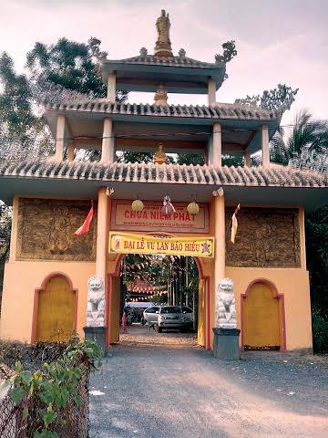 Chùa Niệm Phật ẩn hiện sau những rặng dừa, nằm ngay bên cạnh bờ nam sông Sài Gòn thơ mộng, hiền hòa. Con đường nhỏ dẫn vào chùa rợp bóng mát. Không gian chùa chiền vẫn giữ được vẻ thanh tịnh. Người ta kính cẩn, vái lạy trước ngôi tự thờ xá lợi của Đại lão Hòa thượng Thiện Huê, rồi nhắc nhau ngày giỗ mẹ và sống cho đúng đạo làm người như lời răn dạy của Hòa thượng khi ngài còn ở dương gian.