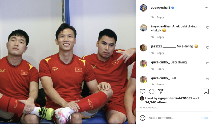 Ít giờ sau trận đấu, trên trang cá nhân của mình, Văn Toàn "lên tiếng": "Trực tiếp từ Dubai, đá xong trận, tắm rửa sách sẽ lướt facebook thấy toàn bị gọi là Lươn Văn Toàn. Bị đạp chân thật mà".