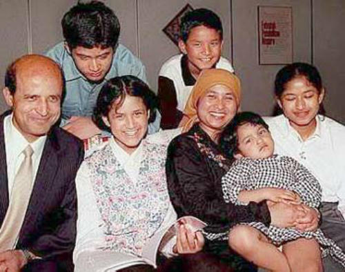 Sufiah ngồi giữa cha và mẹ, chụp ảnh cùng gia đình năm 1997, sau khi được tuyển vào đại học.Ảnh:The Star. |