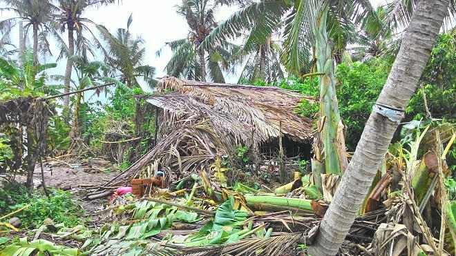 Túp liều của bà Loan, ông Cốc được dựng lên tạm bợ bằng lá dừa nước, xung quanh cây cối um tùm, rậm rạp, muốn vào phải gửi xe cách đó chừng 500 mét. Cuộc sống hai vợ chồng dường như tách biệt với thế giới bên ngoài.