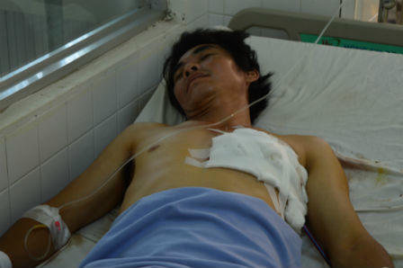 Sau khi hội chẩn, các bác sĩ quyết định mổ để cứu bệnh nhân. Kết quả phẫu thuật cho thấy Sơn bị một vết dao đâm thấu từ trước ra sau gây xuyên phổi, rách cơ tim, may mắn chưa vào sâu trong tim nên thoát chết.