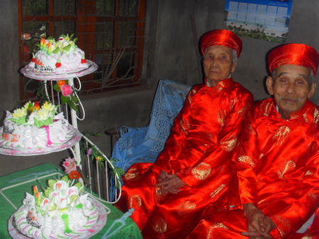 Dù chỉ đến với nhau theo kiểu “cha mẹ đặt đâu con ngồi đó” nhưng nhờ ăn uống hợp lý, luyện tập thể dục thể thao điều độ, cụ bà Trần Thị Cháu (106 tuổi) và cụ ông Trương Triêm (104 tuổi, ngụ khu phố 2, phường An Đôn, thị xã Quảng Trị, tỉnh Quảng Trị) vẫn khỏe mạnh minh mẫn. Hai cụ vừa được Tổ chức Kỷ lục Việt Nam công bố là cặp vợ chồng cao tuổi nhất Việt Nam.
