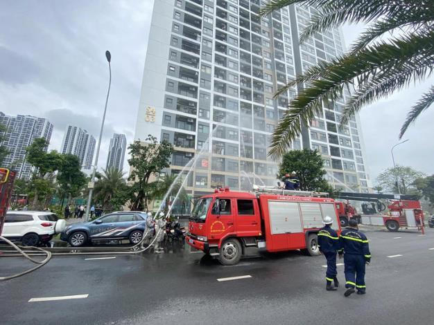 Một buổi diễn tập PCCC tại khu đô thị Vinhomes với sự tham gia của nhiều bên liên quan nhằm nâng cao nhận thức và kỹ năng cho cư dân