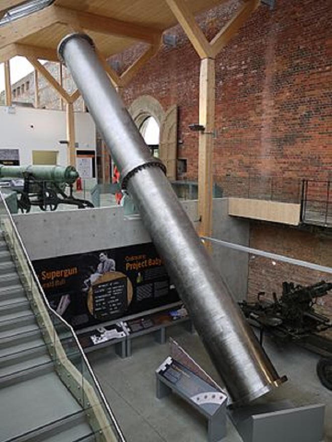 | Di sản cuối cùng của dự án Babylon nhiều tham vọng của Saddam Hussein, một ống thép khổng lồ tại bảo tàng Vũ khí Hoàng gia Anh ở Fort Nelson, Portsmouth. |