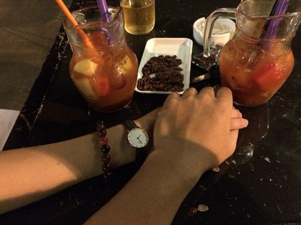 Minh Vương tình tứ nắm tay bạn gái.