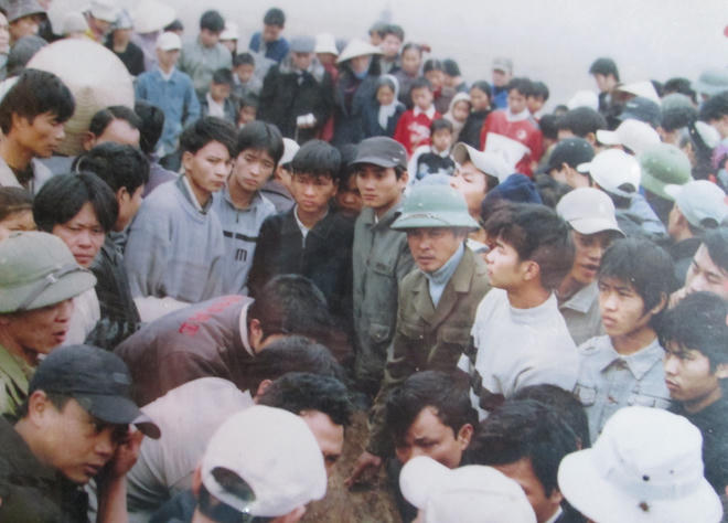 Lúc này kế hoạch chôn cất mộ có thay đổi nhỏ: “Sáng ngày dân làng tổ chức lễ rước, có người lạ qua làng biết chuyện đã góp ý đặt mộ cổ ở vị trí đối diện giếng làng. Hiện là khuôn viên trụ sở nhà văn hóa thôn. Nghe có lí, dân đồng ý thay đổi địa điểm sẽ hạ quan”, ông Khuê kể lại.
