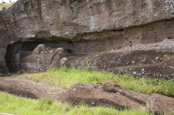 Các pho tượng Moai có ở khắp nơi trên đảo, chúng có thể được xếp thành hàng hoặc nằm ngổn ngang không theo quy luật nào. Đã từ lâu, nhiều người vẫn đinh ninh các tượng Moai chỉ có phần đầu hoặc bán thân. Nhưng, một phát hiện gần đây cho thấy, phần bị lấp sâu dưới đất của những tượng Moai còn nhiều hơn những gì trồi trên bề mặt.