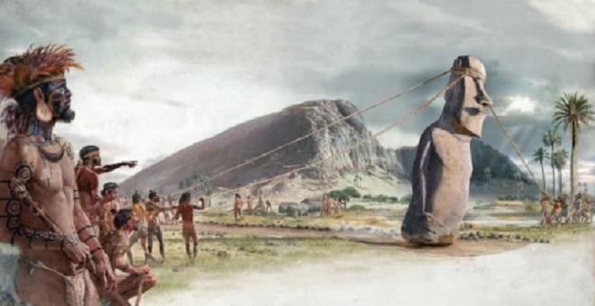 Một số nhà nghiên cứu khẳng định, những tộc người Rapa Nui với công cụ lao động thô sơ chắc chắn sẽ không đủ trí lực để điêu khắc và dựng lên những bức tượng đá khổng lồ như vậy, đặc biệt không thể sắp xếp, bố trí chúng một cách rất khoa học và mỹ thuật khắp đảo.