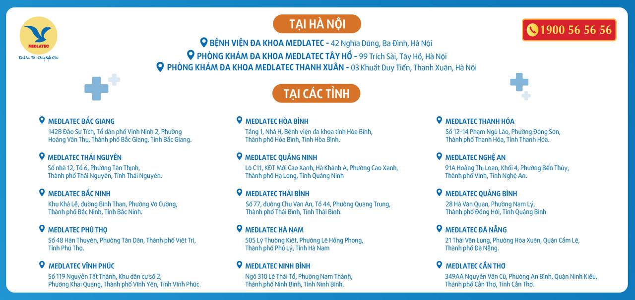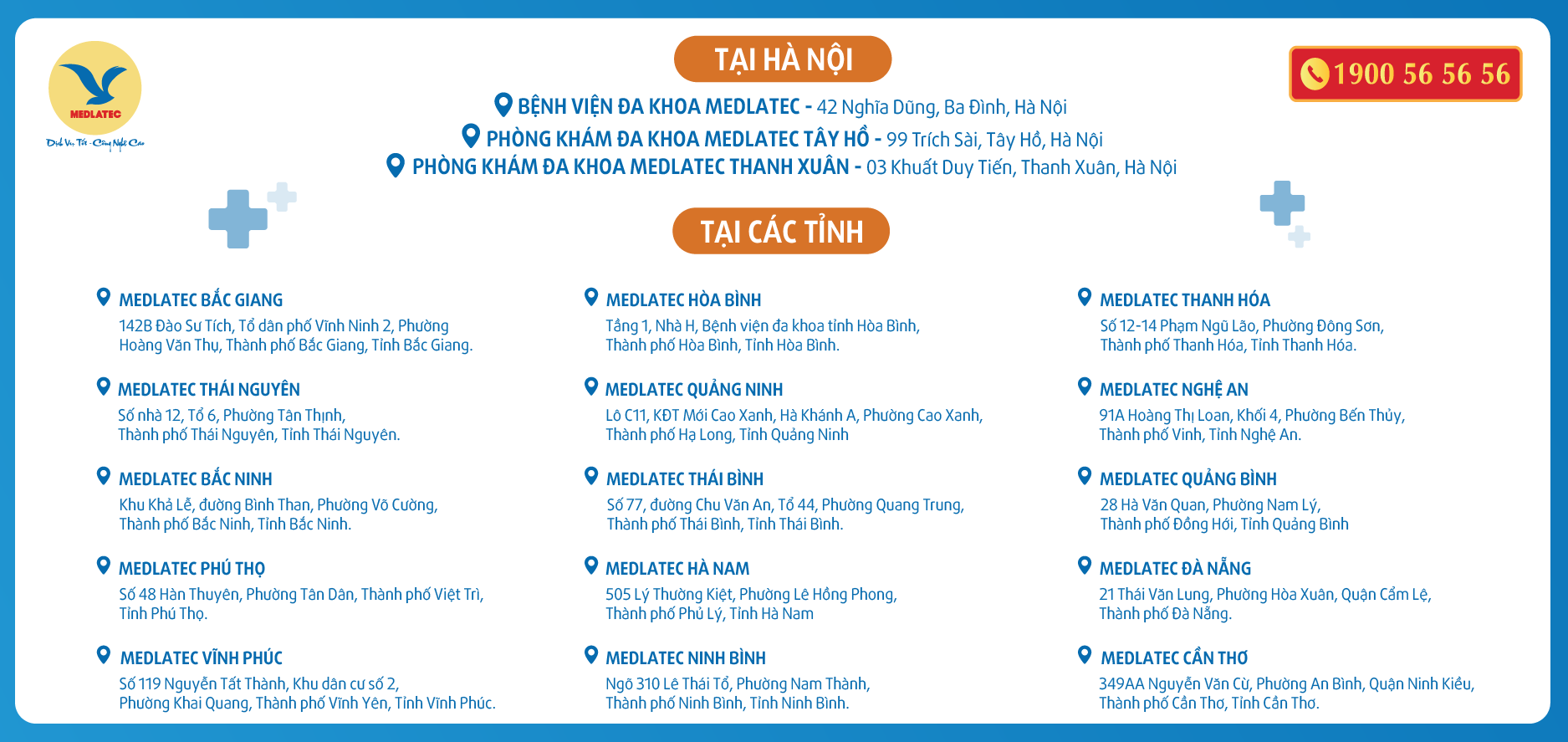 Với hơn 25 năm kinh nghiệm, kết quả xét nghiệm của MEDLATEC được các bệnh viện tuyến đầu thừa nhận, cũng như khẳng định thương hiệu và niềm tin tưởng sử dụng dịch vụ của người dân cả nước.