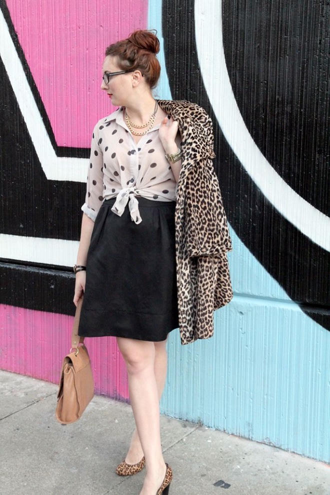 Bạn trông thật tươi vui khi diện hai hoạ tiết với nhau.