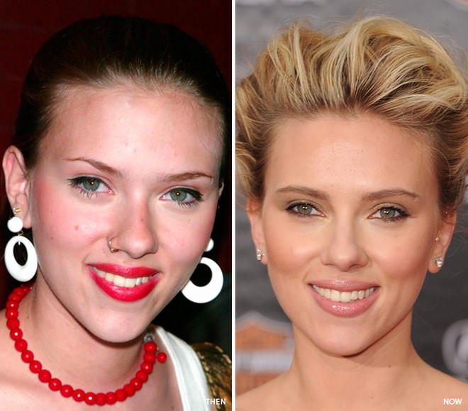 Scarlett Johansson thời trẻ cũng phải đối phó với mụn trứng cá. Sau này, cô tiết lộ mình chọn cách làm sạch da trước khi đi ngủ và thường xuyên vệ sinh đồ trang điểm để phòng tránh mụn.