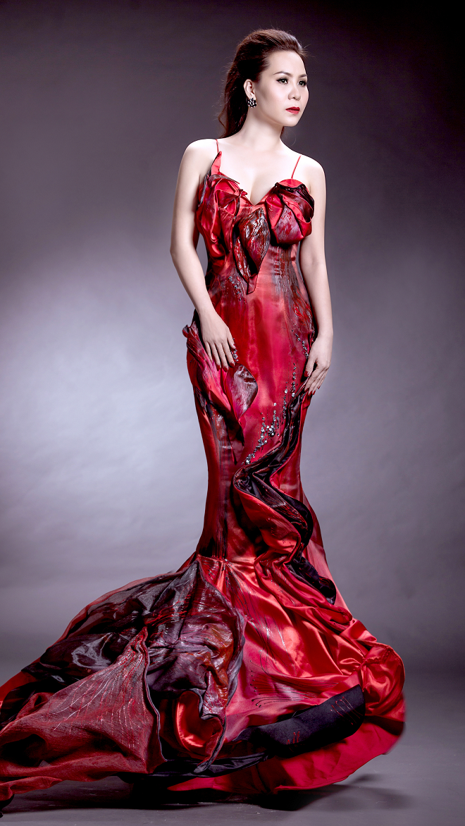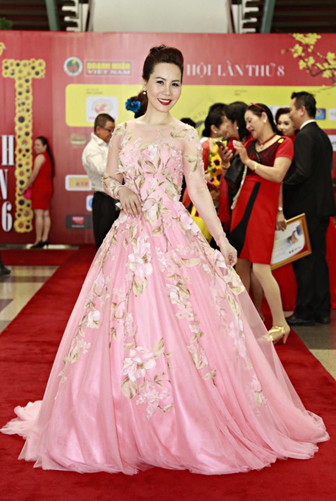 Trong các bữa tiệc hay những màn trình diễn thời trang danh tiếng, khi được mời làm khách mời danh dự, nữ hoàng Kim Chi khéo léo kết hợp những bông hoa trên nền bộ váy dáng xòe rộng, kèm đôi giày cao gót được che đi ở phần váy xòe quét đất...