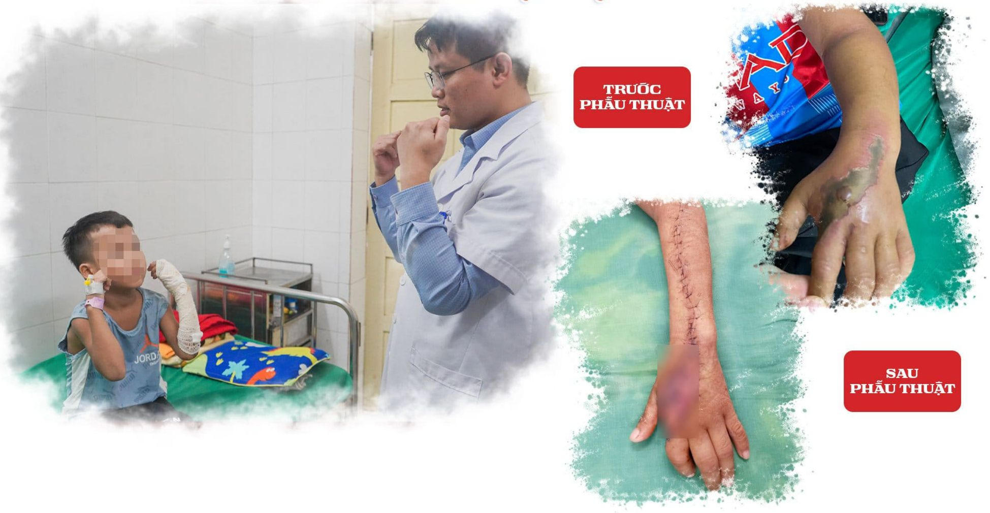 Sau 7 ngày của cuộc mổ lần 2, da ghép vùng mu bàn tay và ngón tay đã bám tốt, hồng, vết mổ khâu da vùng cẳng tay khô, liền mép. Hiện tại, sức khỏe của bệnh nhi tiến triển tốt và được chỉ định xuất viện.