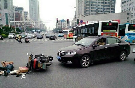 Sự việc xảy ra vào cuối tuần trước trên một tuyến đường đông đúc ở tỉnh Hồ Nam (Trung Quốc), khi một người đàn ông đi xe máy gặp tai nạn với một chiếc ô tô. Sau khi bị ô tô đụng phải, người đàn ông ngã xuống đường, trong khi hàng hóa ở thùng xe mà người này đang chở vương vãi khắp nơi.