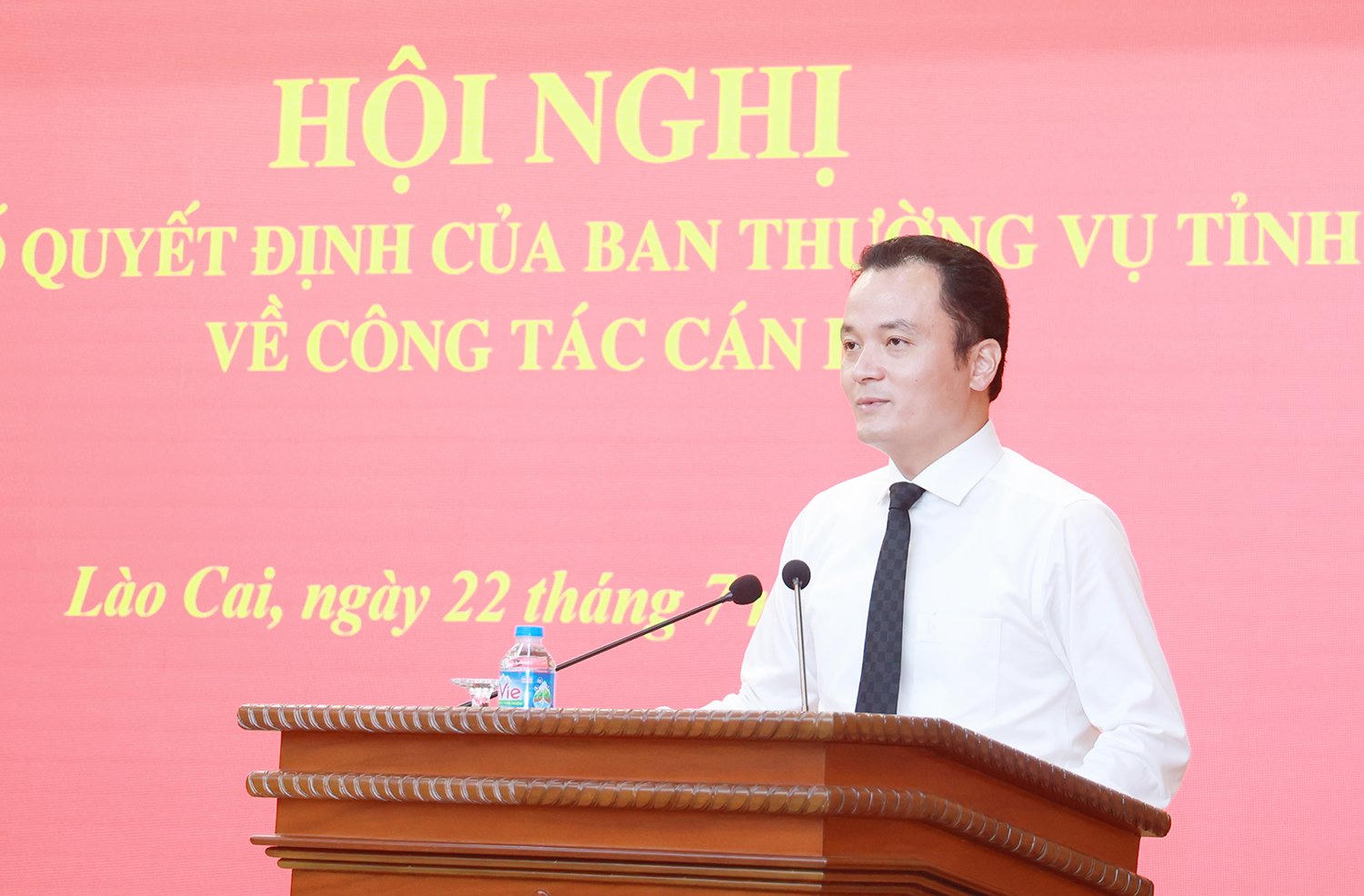 Phát biểu nhận nhiệm vụ, tân Trưởng ban Nội chính Tỉnh ủy Lào Cai hứa sẽ nỗ lực hết sức để hoàn thành xuất sắc nhiệm vụ được giao, góp phần xây dựng Lào Cai vững mạnh toàn diện.