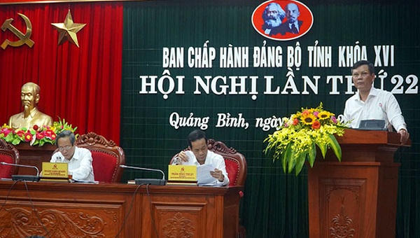 Ngày 6/5, Ban Chấp hành Đảng bộ tỉnh Quảng Bình khóa XVI vừa tiến hành hội nghị lần thứ 22 dưới sự điều hành của ông Hoàng Đăng Quang, Bí thư Tỉnh ủy, Chủ tịch HĐND tỉnh; ông Trần Thắng, Phó Bí thư Thường trực Tỉnh ủy; ông Trần Công Thuật, Phó Bí thư Tỉnh ủy, Chủ tịch UBND tỉnh.