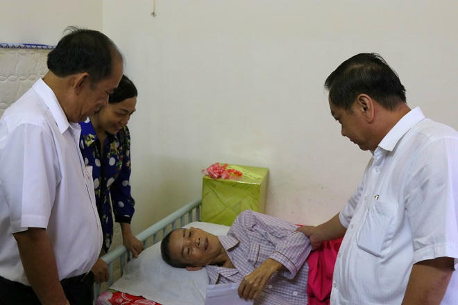 Ông Trần Quốc Trung đến tận giường bệnh thăm ông Phạm Hữu Sơn,bệnh binh 81% ở phường An Thới, quận Bình Thủy |