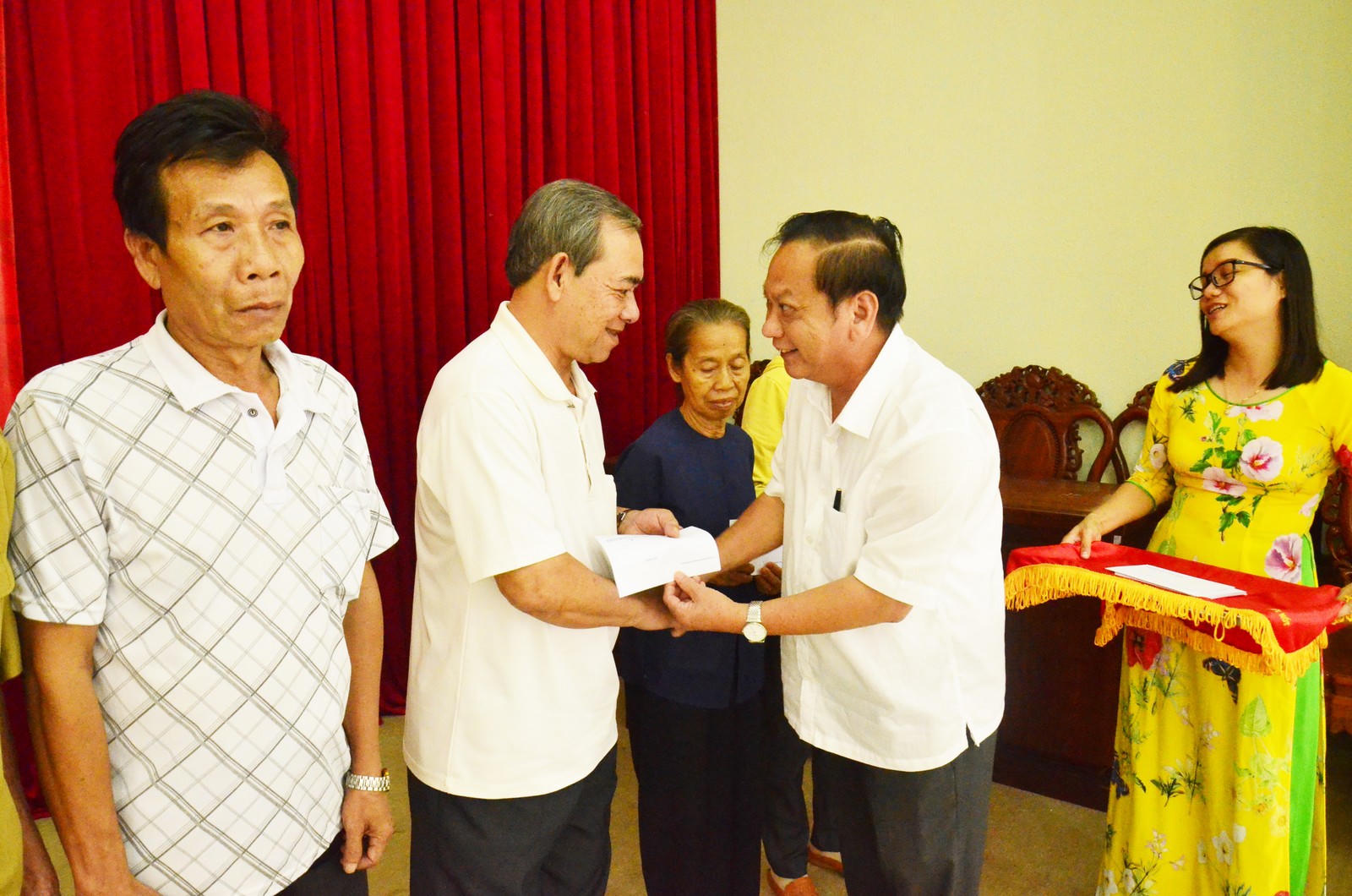 Ngoài thăm hỏi, tặng quà, Bí thư thành ủy Trần Quốc Trung còn lắng nghe tâm tư, nguyện vọng, ý kiến của các mẹ Việt Nam Anh hùng (VNAH), thương bệnh binh để kịp thời có sự quan tâm, chỉ đạo sâu sát chăm lo cho các gia đình chính sách.