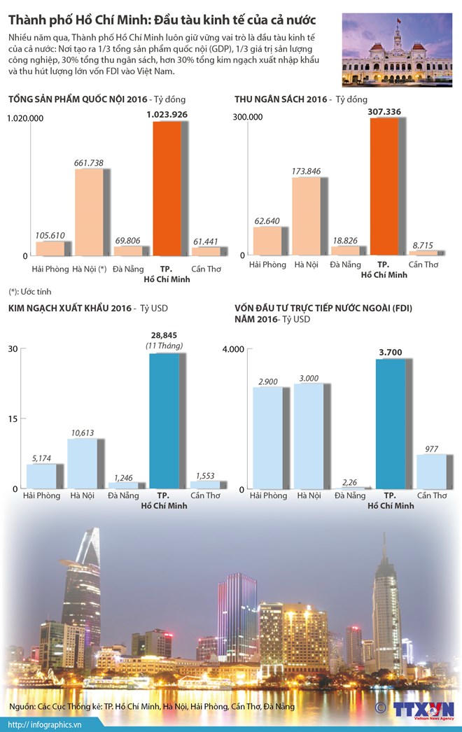 Thành phố Hồ Chí Minh là đô thị đặc biệt, diện tích chỉ chiếm 0,6% diện tích cả nước, dân số chiếm hơn 9% dân số cả nước, song đóng góp gần 22% kinh tế (GDP) và khoảng 28% tổng thu ngân sách cả nước. Tăng trưởng kinh tế Thành phố trong 30 năm đổi mới bình quân 10,7%/năm, gấp 1,6 lần bình quân cả nước. Năng suất lao động của Thành phố gấp 2,7 lần năng suất lao động bình quân cả nước.