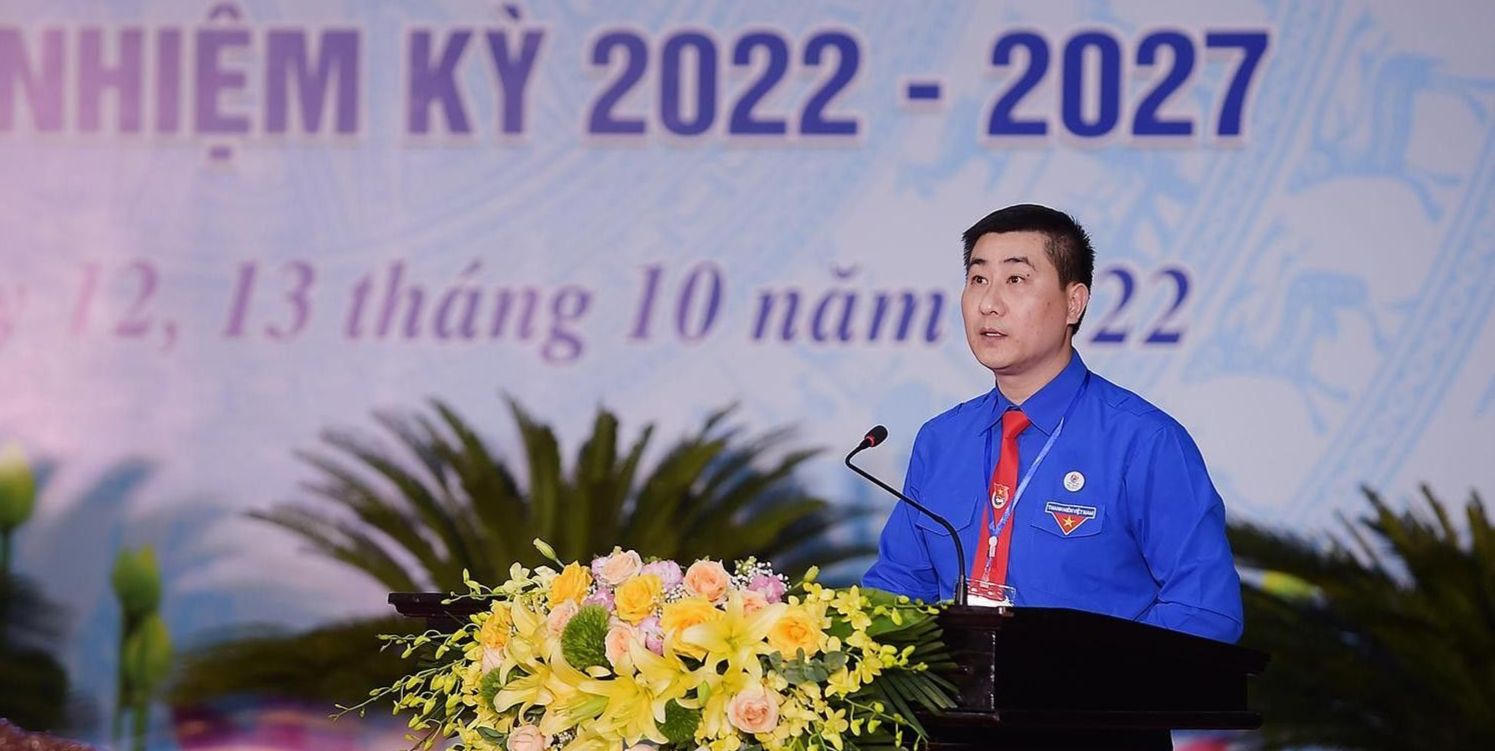 Anh Nguyễn Tường Lâm – Bí thư T.Ư Đoàn phát biểu tại Đại hội Đoàn TNCS Hồ Chí Minh, tỉnh Ninh Bình lần thứ XIV, nhiệm kỳ 2022 - 2027. |