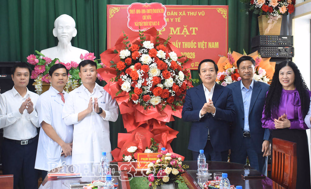 * Chiều 26/2, Chủ tịch UBND tỉnh Hưng Yên Phạm Quang Ngọc đã đến thăm, chúc mừng Thầy thuốc Nhân dân Nguyễn Trọng Bình, nguyên Giám đốc Sở Y tế Thái Bình, cùng cán bộ, nhân viên Trạm Y tế xã Thư Vũ nhân kỷ niệm 71 năm Ngày Thầy thuốc Việt Nam.