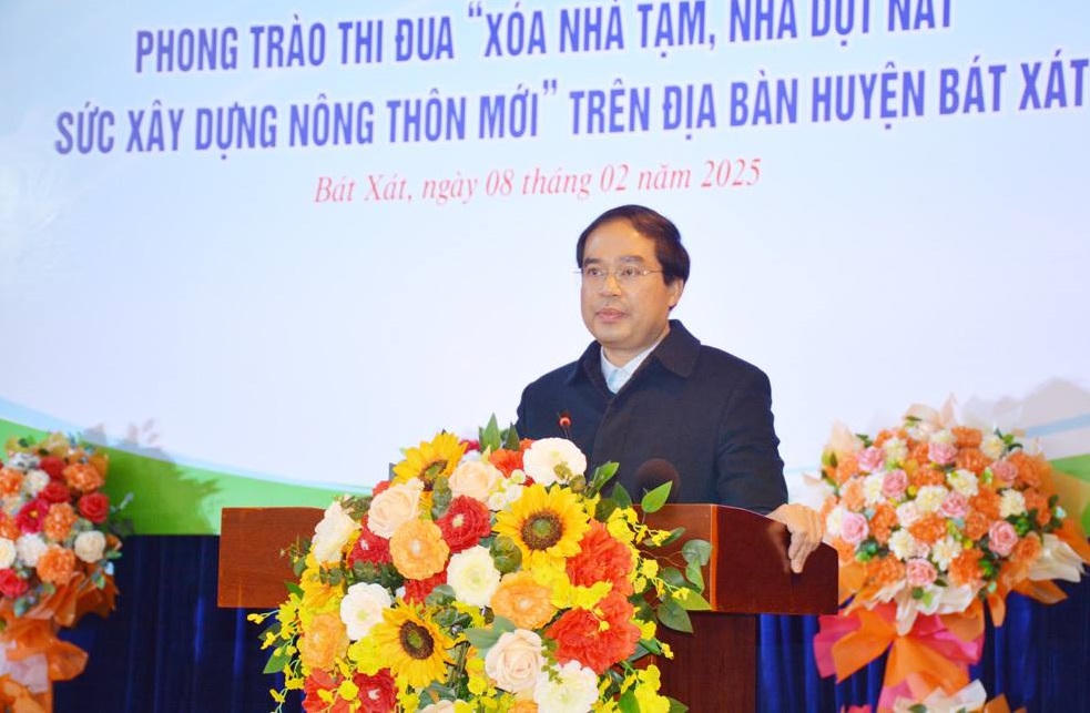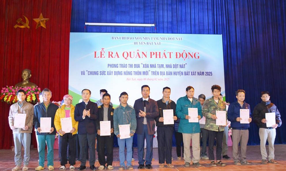 Số hộ nghèo, hộ cận nghèo toàn huyện cần hỗ trợ xóa nhà tạm, nhà dột nát là 2.824 nhà. Trong năm 2024, huyện Bát Xát đã thực hiện hỗ trợ xóa 1.354 nhà tạm (xây mới 471 nhà, sửa chữa 883 nhà); hoàn thành hỗ trợ xây dựng 125 nhà bị sập hoàn toàn do bão số 3. Huyện Bát Xát quyết tâm phấn đấu đến trước 30/5/2025 thực hiện xóa 1.470 nhà tạm, nhà dột nát (572 nhà xây mới, 898 nhà sửa chữa) với dự toán kinh phí trên 62 tỷ đồng.