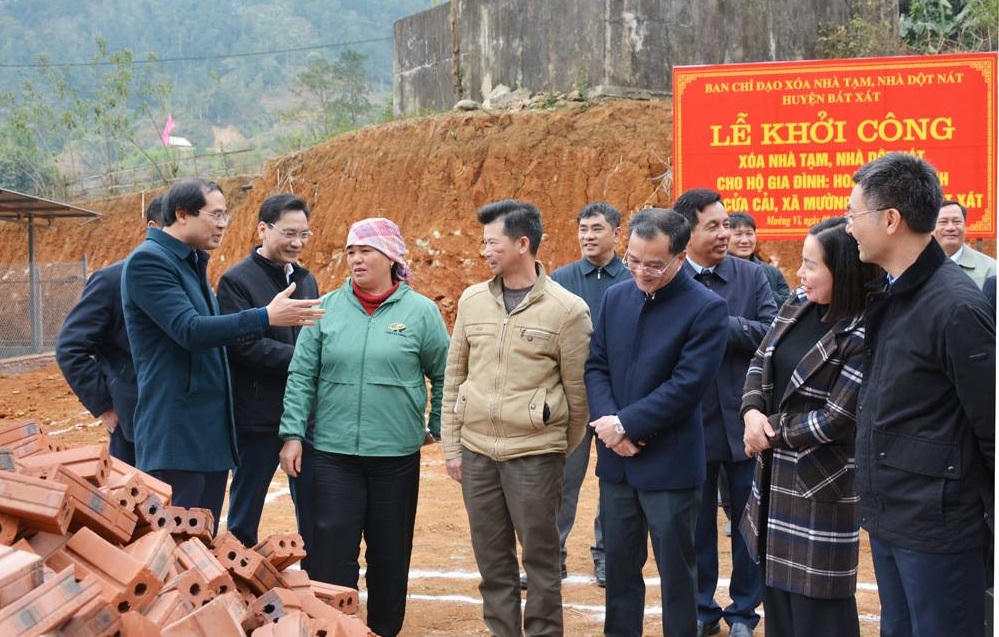 Ngay sau Lễ ra quân phát động, các đại biểu tỉnh, huyện Bát Xát, xã Mường Vi đã di chuyển đến thôn Cửa Cải, khu Tái định cư Đồi tre để khởi công xoá nhà tạm, nhà dột nát cho 3 hộ dân.