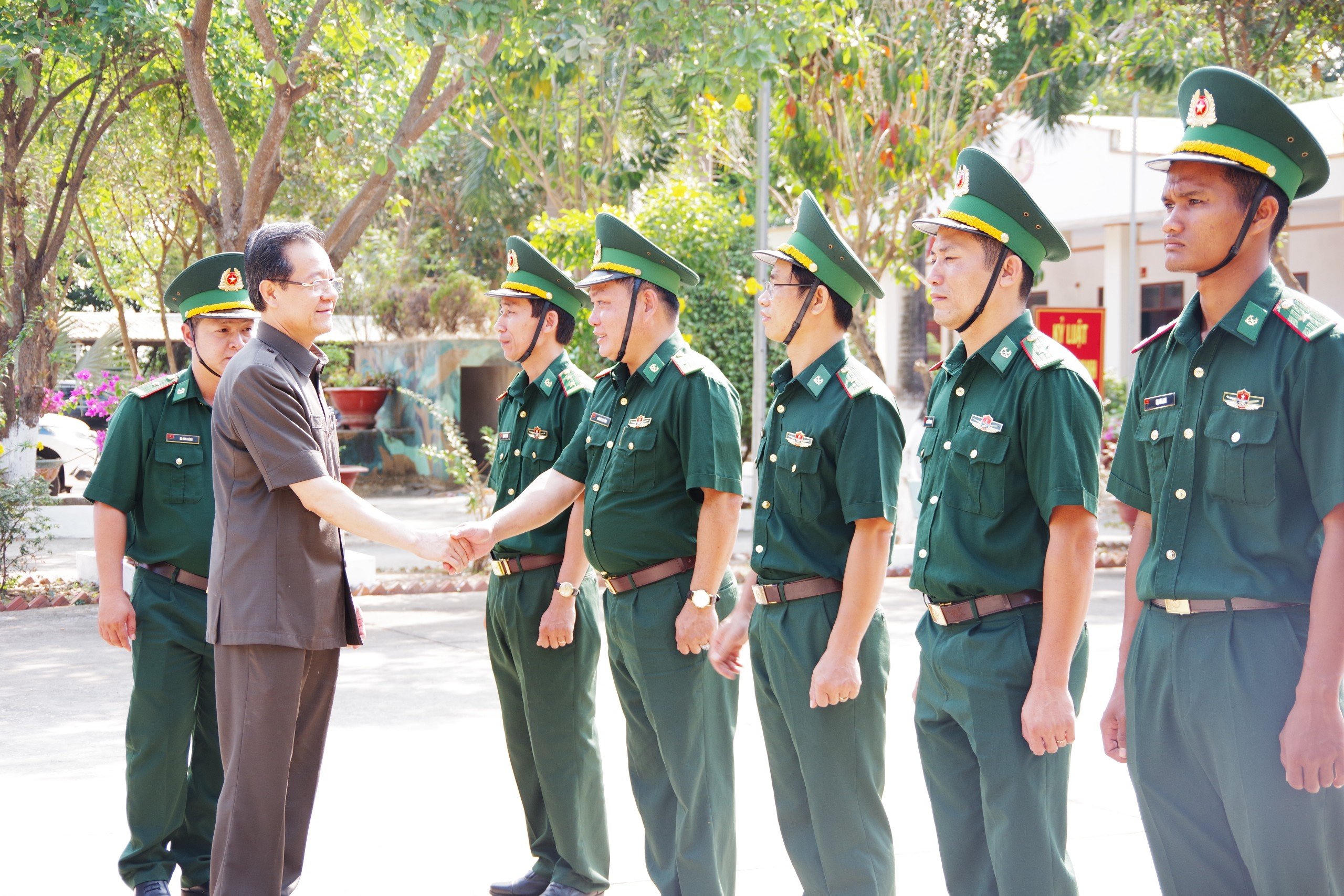 Ông Lê Hồng Quang, Uỷ viên Ban Chấp hành Trung ương Đảng, Bí thư Tỉnh ủy An Giang đến thăm, chúc Tết cán bộ, chiến sĩ Đồn Biên phòng Vĩnh Nguơn. |
