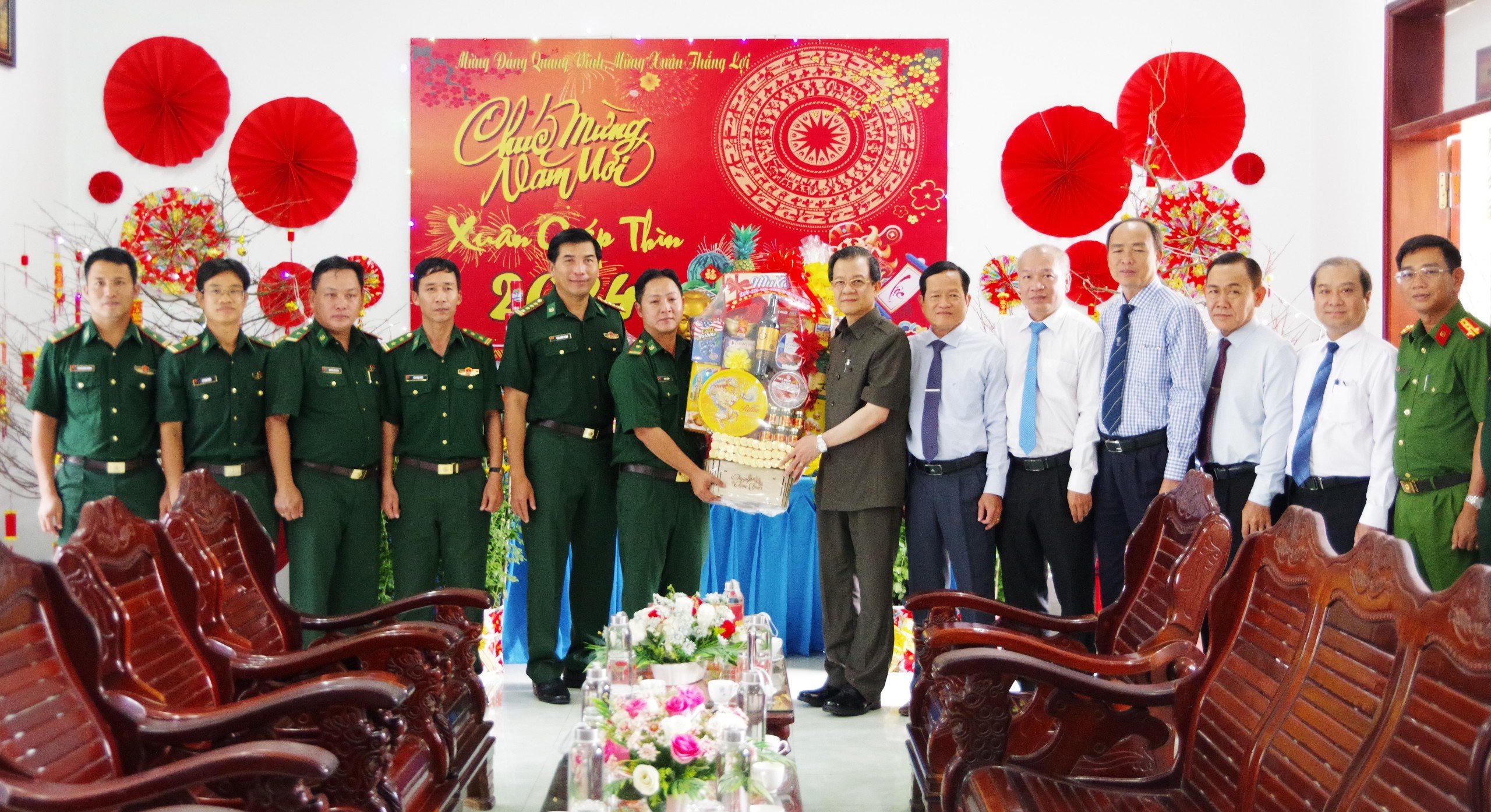 Nhân dịp đón năm mới Giáp Thìn 2024, thay mặt Tỉnh ủy, Hội đồng Nhân dân, Ủy ban Nhân dân, Uỷ ban Mặt trận Tổ quốc Việt Nam tỉnh, đồng chí Bí thư Tỉnh ủy gửi đến toàn thể cán bộ, chiến sĩ BĐBP tỉnh và gia đình lời chúc sức khỏe, an lành, hạnh phúc, chúc đơn vị trong năm 2024 hoàn thành xuất sắc nhiệm vụ quản lý, bảo vệ chủ quyền an ninh biên giới quốc gia, chung tay xây dựng tỉnh An Giang ngày càng phát triển.