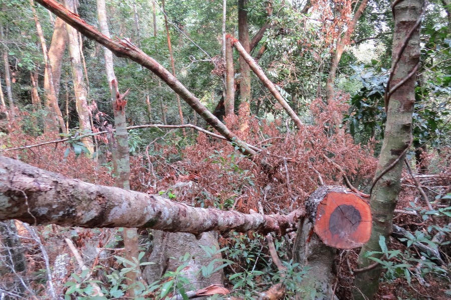 Tại các khoảnh 13, 14 của tiểu khu 649, 24 cây gỗ đã bị khai thác với khối lượng 23,878m3. Trong số này, có 19 cây mun sọc, khối lượng 18,983m3 và các loại cây gỗ khác như: táu, trường vải… với khối lượng 4,895m3. Ở những nơi rừng bị triệt hạ, dấu vết để lại là những bãi cành, ngọn, mạt cưa, bìa (phần vỏ bên ngoài), vỏ chai nước… nằm ngổn ngang giữa rừng.