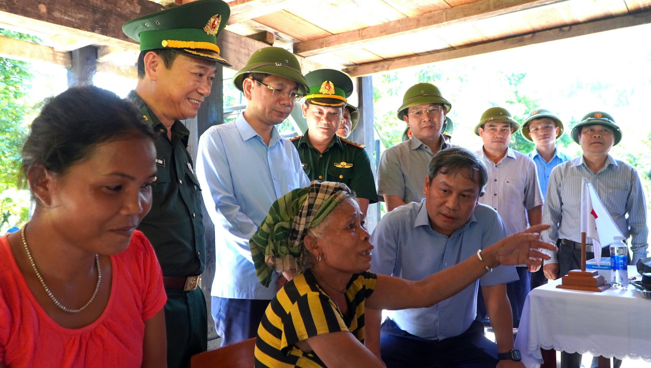 Bí thư Tỉnh ủy Vũ Đại Thắng thăm hỏi, động viên bà con bản Dốc Mây, xã Trường Sơn. |