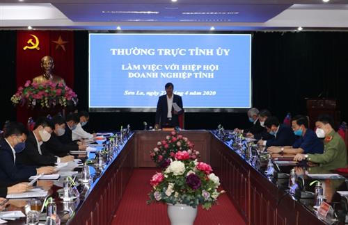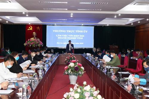 Tại cuộc làm việc, Hiệp hội Doanh nghiệp tỉnh kiến nghị với Thường trực tỉnh ủy chỉ đạo đẩy nhanh triển khai các gói hỗ trợ của doanh nghiệp do ảnh hưởng của dịch COVID-19 và tháo gỡ khó khăn vướng mắc của các dự án.